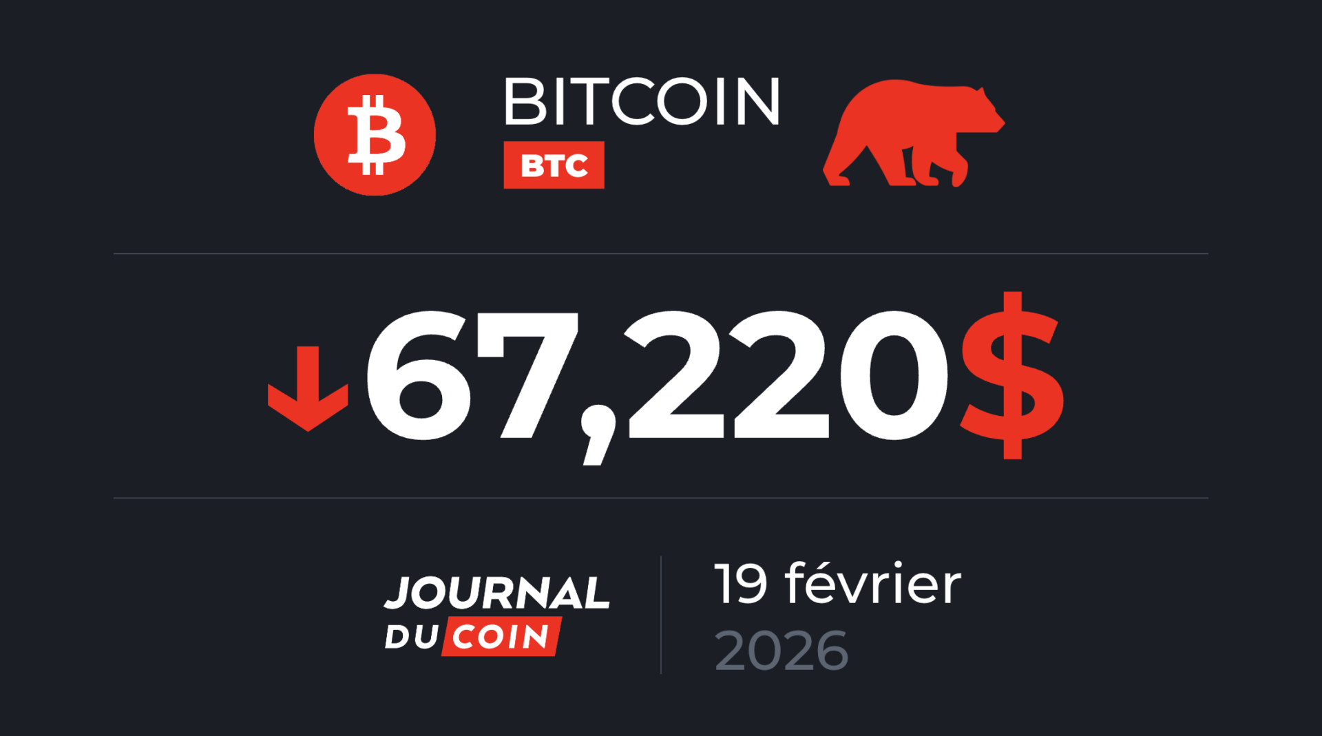 Le bitcoin continue de fluctuer autour des67.000 dollars, pénalisé par l'aversion au risque persistantedes investisseurs pour le march - 19/02/2026 11:28