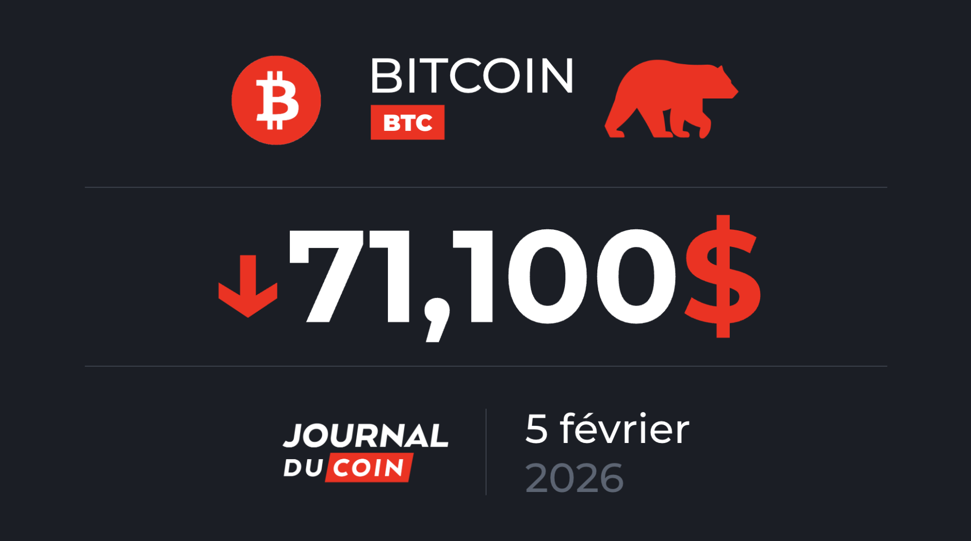 Le Bitcoin est tombé sous la barre des 70 000 $/BTC dans un contexte de forte aversion au risque qui touche les marchés mondiaux. Ce prix de 70 000 $/BTC représente le cours le plus bas du Bitcoin depuis 15 mois.