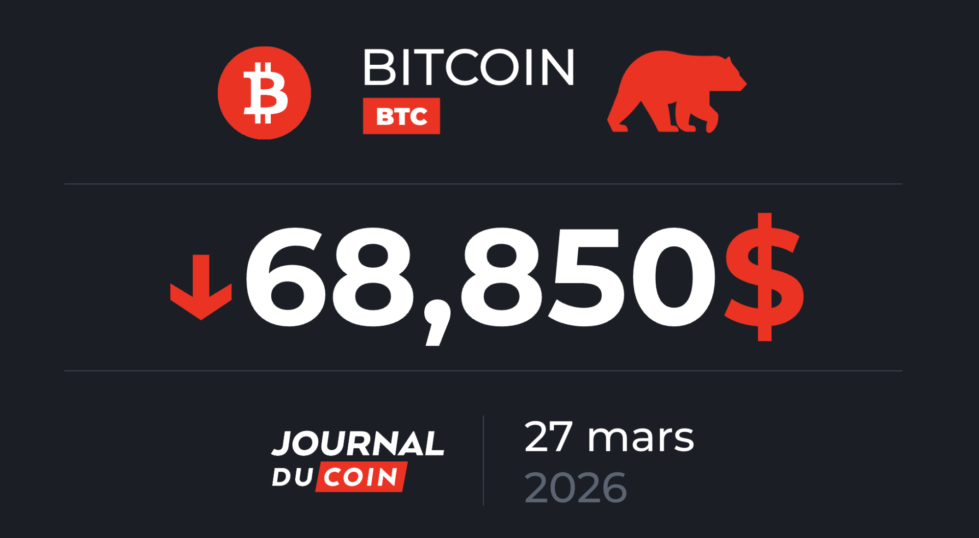 Le bitcoin est passé vendredi sous leseuil des 68.000 dollars, dans un contexte d'incertitude quant àune résolution prochaine du co - 27/03/2026 11:23
